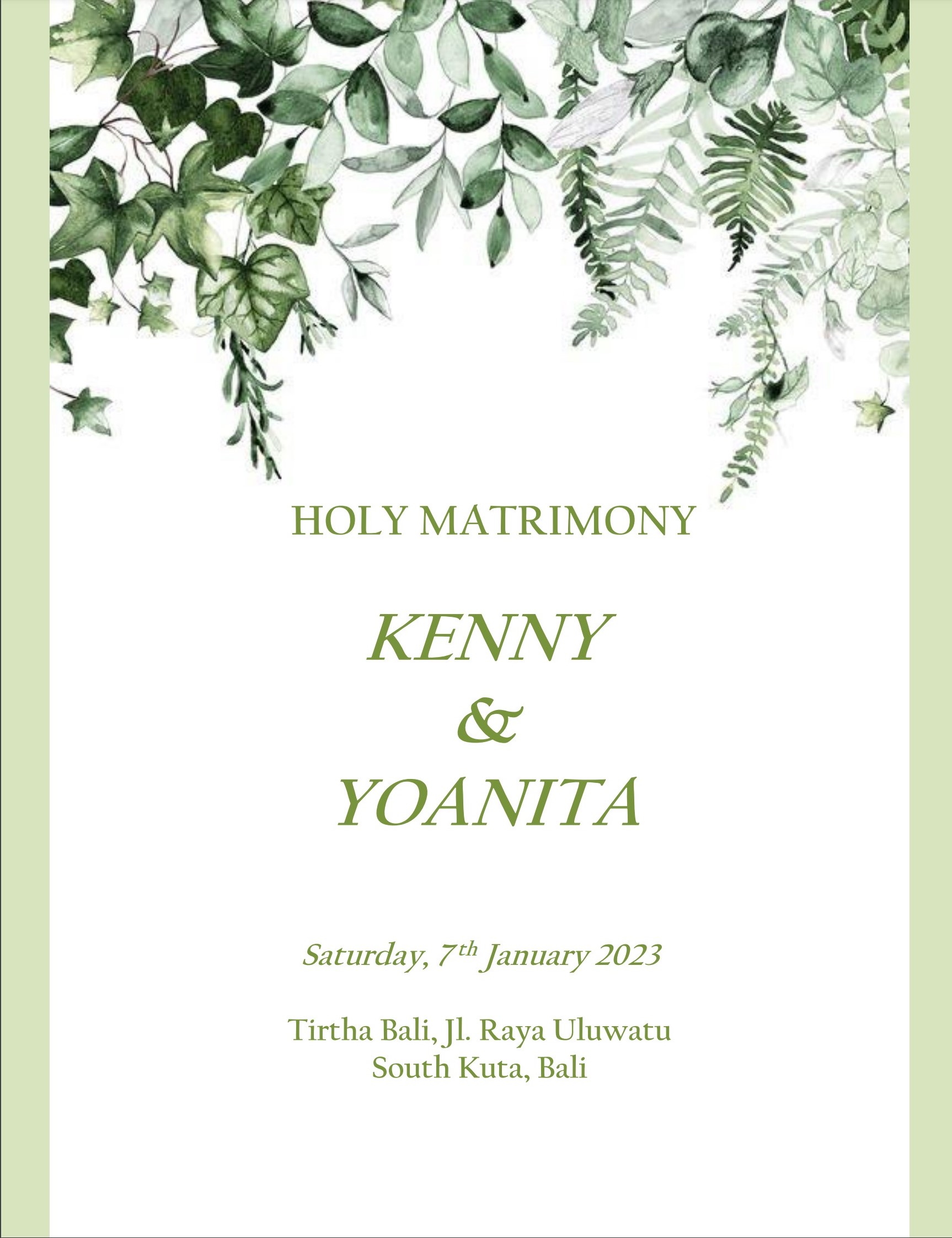 Kidung Agung 3:4 “Kutemui jantung hatiku.” (TB) “I found the one I love.” (NKJV) Dalam undangan pernikahan Kenny & Yoanita yang saya terima, dikutip seperti ini, “I have found the one whom my soul loves.” Pernikahan adalah persekutuan intim dari seorang laki-laki dan seorang perempuan (Kejadian 2:24). Karena itu saya setuju dengan terjemahan Inggris yang … Continue reading PERNIKAHAN DI DALAM NAMA YESUS
